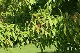 Листья тройчато-сложные, с длинными красноватыми черешками. Листочки ланцетные, яйцевидно-ланцетные или продолговато-эллипсоидные, до 8 см длиной и 2,5 см шириной.