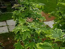 - 'Drummondii'[24] — с бело-окаймлёнными листьями, розовыми при распускании; отобран в питомнике Друммонда (англ. Drummond) в Шотландии около 1903 года