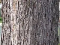 Кора молодых деревьев светло-серая, гладкая, с возрастом темнеет и покрывается длинными узкими трещиноватыми хлопьевидными чешуйками.