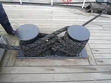 - На российском флоте на прямой кнехт просто накладывают 6 восьмёрок троса, на крестовом кнехте делают шлаг, а после накладывают восьмёрки[2]