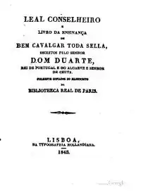 - Liuro da Enssynança de Bem Cavalgar Toda Sela // Leal Conselheiro e Livro da Ensinança de bem cavalgar toda sela, escritos pelo Senhor D. Duarte : [порт.] / Ed. [Francisco António Campos]. — Lisboa : Typographia Rollandiana, 1843. — 336+119 p.