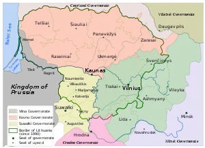 По итогам третьего раздела Речи Посполитой в 1795 году больша́я часть территории Литвы была присоединена к Российской империи, поделена на губернии и стала называться Литовским генерал-губернаторством. Часть населения края (поляки, литовцы и белорусы) не раз пыталась добиться независимости от России. После Польского восстания 1830 года на территории Литвы и Белоруссии начала проводиться политика русификации[2], было отменено действие Статутов Великого княжества Литовского и образован Северо-Западный край Российской империи.