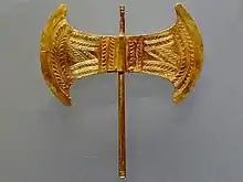 Согласно греческой мифологии Минос велел Дедалу построить огромный лабиринт (который иногда сравнивают с двусторонним топором, или лабрисом), чтобы держать там своего сына Минотавра. Дедал также построил площадку для танцев королевны Ариадны[5].
