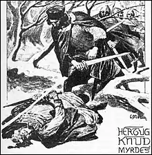 ![]() Кнуд Лавард. Изображение в церкви Вигерстеда вблизи Рингстеда. | |