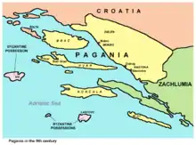 В раннем средневековье в Южной Далмации располагались небольшие славянские княжества Пагания / Неретва, Захумье / Хум, Травуния и Дукля. Пагания была небольшим княжеством между Цетине и Неретвой. Территории Захумья и Травунии выходили за пределы современной Далмации и вдавались вглубь Балкан, в современную Герцеговину. Дукля занимала территории на юг от Дубровника/Рагузы вплоть до озера Шкодер.