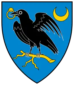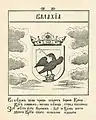 Описание герба Валахии, включенного, наряду с гербами других владений князей Кантакузенов, в состав их родового герба: «в лазуревом поле золотой ворон на зелёной скале, держащий в клюве золотой крест, сопровождаемый золотыми же солнцем и полумесяцем»[81]. Существует вариант с чёрным вороном.