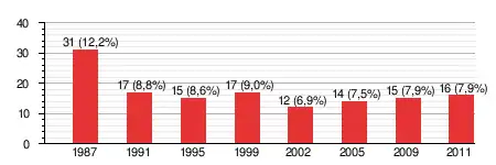 - Динамика депутатских мест и голосов избирателей (в процентах)