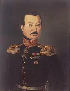 ![]() портрет генерал-майора П. Д. Кобелева работы художника Соколова, 1844 г. | |