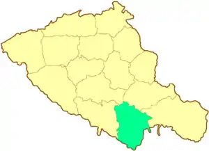 Располагался между 48°45' и 49°31' северной широты, на юге губернии и отделяется от Екатеринославской губернии течением рек Днепра и Орели.