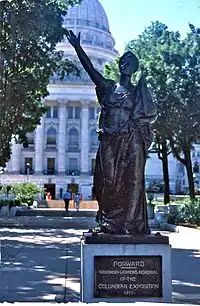 Во время Всемирной (Колумбовой) выставки 1893 года в Чикаго, Джин Коберн и Хелен Мирс были назначены главными художниками в здании Wisconsin Building. Коберн было поручено создать произведение искусства, представляющее штат Висконсин, и она создала скульптуру «Forward» — это название является девизом штата. Впоследствии статуя была куплена организацией Women's suffrage in the United States и подарена штату Висконсин от имени этого женского избирательного движения.[6]