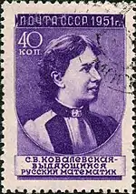 Со́фья Васи́льевна Ковале́вская (урождённая Корвин-Круковская; 3 [15] января 1850, Москва — 29 января [10 февраля] 1891, Стокгольм) — русский математик и механик, с 1889 года — иностранный член-корреспондент Петербургской академии наук[lower-alpha 1]. Первая в мире женщина — профессор математики[lower-alpha 2]. Автор повести «Нигилистка» (1884) и книги «Воспоминания детства» (1889, впервые на русском языке — 1890).