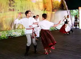 Украинский вариант танца исполняется парнями: три человека стоят в одной линии. Первый человек в ряду выполняет роль «кузнеца», а остальные мужчины являются помощниками кузнеца[1].
