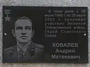 - Мемориальная доска Ковалёву Андрею Матвеевичу (недоступная ссылка). Сайт архиват.рф. Дата обращения: 8 июля 2015. Архивировано 10 августа 2016 года.