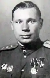 Указом Президиума Верховного Совета СССР «О присвоении звания Героя Советского Союза генералам, офицерскому, сержантскому и рядовому составу Красной Армии» от 10 января 1944 года за «образцовое выполнение боевых заданий командования на фронте борьбы с немецко-фашистскими захватчиками и проявленные при этом отвагу и геройство» удостоен звания Героя Советского Союза с вручением ордена Ленина и медали «Золотая Звезда»[2].