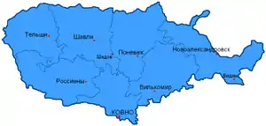 | 1 | Вилькомирский | Вилькомир (16 559 чел.) | 5185,8 | 219 617 (1889) | |