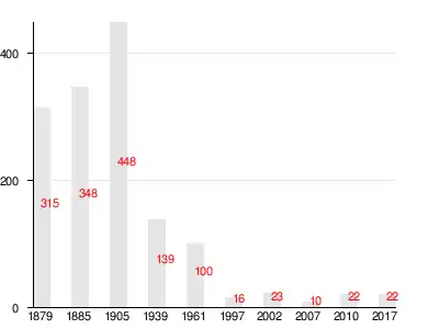 | 1879 | 1885 | 1905 | 1939 | 1961 | 1997 | 2007[14] |