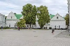 Южная часть сооружения — монастырская проскурница — возведена в XVII ст. В начале XVIII ст. Степан Ковнир построил рядом книжный магазин с отдельным входом. Над всем образовавшимся зданием возвели шесть фронтонов.[3]