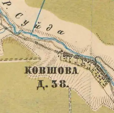 Согласно карте 1879 года, деревня называлась Ковшова и состояла из 30 крестьянских дворов[18].