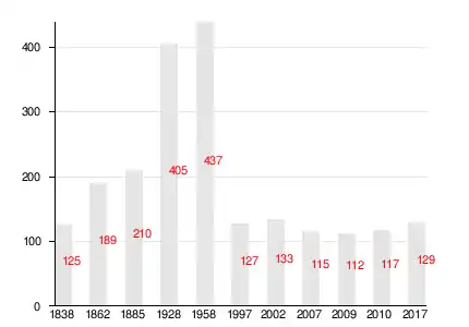 | 1838 | 1862 | 1885 | 1928 | 1958 | 1997 | 2007[32] |
