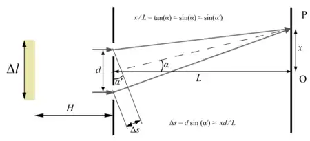При этом разность путей при прохождении света от точки источника до каждой из щелей вычисляется так же, как и в опыте Юнга , где y — координата точки на источнике.
