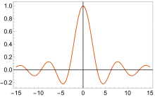 В этом случае интенсивность на экране имеет вид косинуса, но амплитуда его уменьшается по закону sinc в зависимости от протяженности источника.