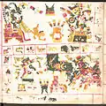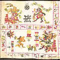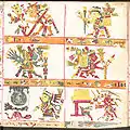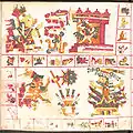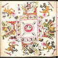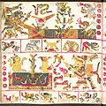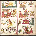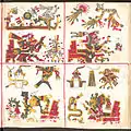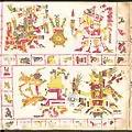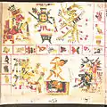 ![]() Страница 71 Кодекса Борджиа; изображает бога солнца Тонатиу, который пьёт кровь обезглавленной птицы. | |