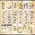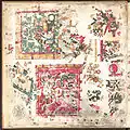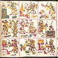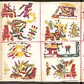 Страницы изображают божества, связанные с деторождением. Каждая из 20 секций содержит 4 дневных знака.