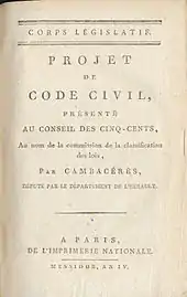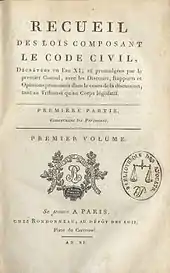 | Принятие | Законодательным корпусом 5 марта 1803 года — 20 марта 1804 года (отдельные гражданские законы), 21 марта 1804 года (закон об объединении гражданских законов в Гражданский кодекс) |