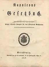 | Подписание | Первым консулом Наполеоном Бонапартом и государственным секретарём Югом-Бернаром Маре 31 марта 1804 года |