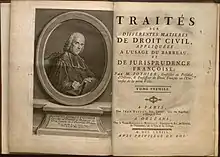 Первые разработки теории единого гражданского права были осуществлены учёными-правоведами. В частности, знаменитый юрист XVIII века Робер-Жозеф Потье написал ряд фундаментальных трудов в области гражданского права, к числу которых относятся многотомные «Пандекты Юстиниана в новом порядке» (лат. «Pandectae lustinianeae in novum ordinem digestae», 1748—1752), а также «Трактат об обязательствах» (фр. «Traité des obligations», 1761). Использовавшие общий предметно-правовой метод, работы Потье оказали значительное влияние на систему и содержание Кодекса Наполеона[32][33].