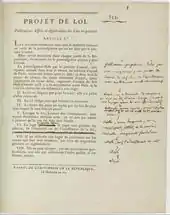 Начало движению к созданию общефранцузского гражданского права положило революционное Учредительное собрание, 4 августа 1789 года отменившее все феодальные права и привилегии. В апреле 1790 года аббат Сьейес включил в свой законопроект об учреждении суда присяжных по гражданским делам следующее положение: «Последующие законодательные собрания займутся составлением для французов нового кодекса, унифицирующего законодательство, и нового порядка процесса, доведённых до совершеннейшей простоты». 16—24 августа 1790 года Учредительное собрание издало декрет об организации судопроизводства, в котором среди прочего провозглашалось, что будет издан единый кодекс гражданских законов. Это положение было подтверждено Конституцией от 3 сентября 1791 года, в разделе первом которой устанавливалось: «Будет издан кодекс гражданских законов, общих для всего королевства»[34][35].