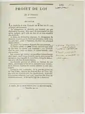 Однако при обсуждении законопроекта о правопорядке и реформе гражданских законов и о разработке Гражданского кодекса депутаты Учредительного собрания пришли к выводу, что вопрос о кодификации следует оставить Законодательному собранию, образование которого было предусмотрено Конституцией. Они исходили из того, что при сложившихся обстоятельствах необходимо сначала полностью переработать всё гражданское законодательство, чем и должен был заняться будущий законодательный орган. В результате последовавших прений депутаты утвердили лишь принципиальные положения о реформе права и о кодификации, оставив вопрос о сроках и порядке подготовки проекта Гражданского кодекса открытым. Начавшее работу 1 октября 1791 года Законодательное собрание уже в конце 1791 года прямо обратилось к гражданам с просьбой направлять свои предложения о разработке Гражданского кодекса. Тем не менее этому законодательному органу так и не удалось дойти до вопроса кодификации гражданского права, поскольку уже через год, 21 сентября 1792 года, он уступил место Национальному конвенту[34].
