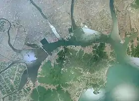 ![]() Залив Кодзима (справа) и озеро Кодзима (слева), аэросъёмка | |