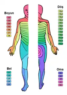 К соматической[25] афферентной[26] («центростремительной») иннервации относятся чувствительные нервные волокна, образующие многочисленные окончания. Эти чувствительные нервные окончания (условно) можно разделить на[27][28]:
