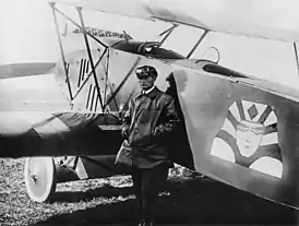 ![]() Командир 1-й истребительной эскадрильи Александр Тимофеевич Кожевников у своего самолёта (1923) | |