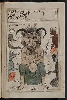 ![]() Иблис демонстрирует жест «коза». «Китаб аль-булхан», арабский манускрипт XIV века |