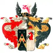Щит рассечен. В правой лазуревой части серебряная шпага, в левой серебряной части черная подкова вниз, на ней червленый уширенный крест, на котором черная птица вправо держит в клюве золотое кольцо с червленым камнем. Над щитом дворянский коронованный шлем с тремя страусовыми перьями. Намёт: лазуревый и золотой, подложенный серебром и червленым.
