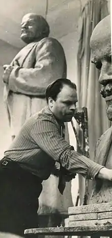 - Портрет директора Тюменского театра Колмакова. 1955. г. т., 45X25X25. 4. В. И. Ленин. 1955, г. т., 69x50x34.