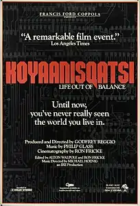 «Кояанискаци» (Koyaanisqatsi; Жизнь, выведенная из равновесия) — документальный фильм Годфри Реджио с музыкой композитора Филипа Гласса и киносъёмками Рона Фрике. Лента содержит большое количество фрагментов, снятых по технологии замедленной киносъёмки. Фильм полностью лишён дикторского текста и актёрской речи, однако его музыкальное оформление, на которое опирается сюжет, имеет в повествовании такое же значение, как и видеоряд, и фактически создаёт атмосферу фильма.