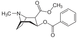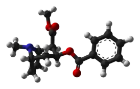 Кокаи́н — алкалоид тропанового ряда, метиловый сложный эфир бензоилэкгонина, широко распространённый наркотик[1]:181. Обладает местным анестезирующим действием и мощным стимулирующим воздействием на центральную нервную систему человека, вызывая чувство эйфории[уточнить]. Наряду с другими алкалоидами содержится в растениях рода Эритроксилум (Erythroxylum), прежде всего в кокаиновых кустах (Erythroxylum coca), распространённых в тропической зоне Южной Америки[2][3], в которых выполняет функцию инсектицида, препятствующего поеданию листьев[4].