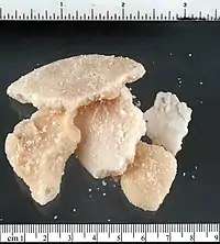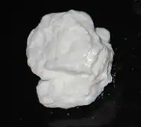 Соль кокаина. Белый, чуть желтоватый или кремовый порошок, допускается содержание твёрдых прозрачных кристаллов[39][40].