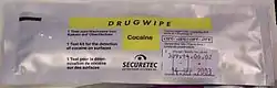 Образец при подозрении на кокаин обрабатывают раствором роданида кобальта. Наличие кокаина устанавливают по появлению синего окрашивания[19].