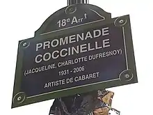 - Décès de Coccinelle, pionnière de la cause transsexuelle et meneuse de revue (10 October 2006). Yahoo! France News accessed through The Internet Archive. Дата обращения: 4 февраля 2010. Архивировано 11 марта 2007 года.