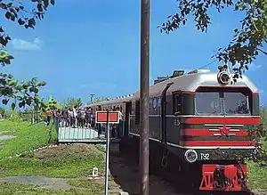 Подвижной состав был представлен тепловозом ТУ2-041 и несколько вагонами ПВ40.