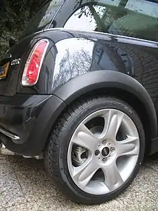 В общепринятой автомобилестроении терминологии[20], колесом называется только узел, расположенный между ступицей и шиной (см. рис.), — состоящий, в свою очередь, из обода, на который сажается шина, и диска или спиц, служащих для соединения обода со ступицей.