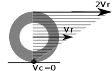 Сцепление колеса с поверхностью должно быть эффективным, так как очевидно, что если скорость в точке соприкосновения колеса с землёй будет отлична от нуля, то колесо будет скользить. Из вышеприведённого выражения следует, что существует линейная зависимость между величиной скорости в любой точке на земле и расстоянием между точкой соприкосновения и плоскостью вращения. Благодаря знаниям кинематики движения скорость может быть разложена на две составляющие: