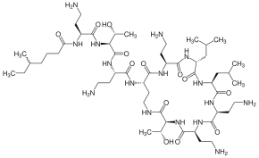 | ИЮПАК | N-(4-amino-1-(1-(4-amino-1-oxo-1-(3,12,23-tris(2-aminoéthyl)- 20-(1-hydroxyéthyl)-6,9-diisobutyl-2,5,8,11,14,19,22-heptaoxo- 1,4,7,10,13,18-hexaazacyclotricosan-15-ylamino)butan-2-ylamino)- 3-hydroxybutan-2-ylamino)-1-oxobutan-2-yl-N,5-diméthylheptanamid |