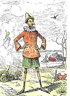 Наиболее известное произведение Коллоди — повесть «Приключения Пиноккио: история деревянной куклы» итал. («Le avventure di Pinocchio: storia di un burattino»), которая вначале, с 1881 года, публиковалась в виде романа-фельетона на страницах «Газеты для детей» (Il Giornale dei Bambini), а затем, в 1883 году, вышла отдельным изданием. Книга переведена на 87 языков; первый русский перевод вышел в 1906 году.