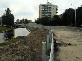 ![]() Коломяжский путепровод по направлению из центра за несколько дней до открытия (вид с набережной Чёрной речки) | |
