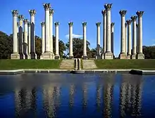 Коло́нна в архитектуре (фр. colonne, от лат. cоlumna) — часть архитектурной конструкции, столб цилиндрической формы, деревянный, каменный или металлический. В классической архитектуре поддерживает антаблемент или арку. Столб квадратного сечения называется пилоном, уплощенной формы — пилястрой. Существуют также полуколонны и трехчетвертные колонны. Полуколонна выступает от плоскости стены на половину своего диаметра; трехчетвертная — на три четверти. Колонна может поддерживать несущие элементы конструкции или выполнять декоративную функцию. Пилястра имеет внешние сходства с колонной, но при этом не имеет энтазиса; может быть как несущим архитектурным элементом, так и декоративным[1]. Длинная последовательность столбцов, соединённых антаблементом, называется колоннадой.